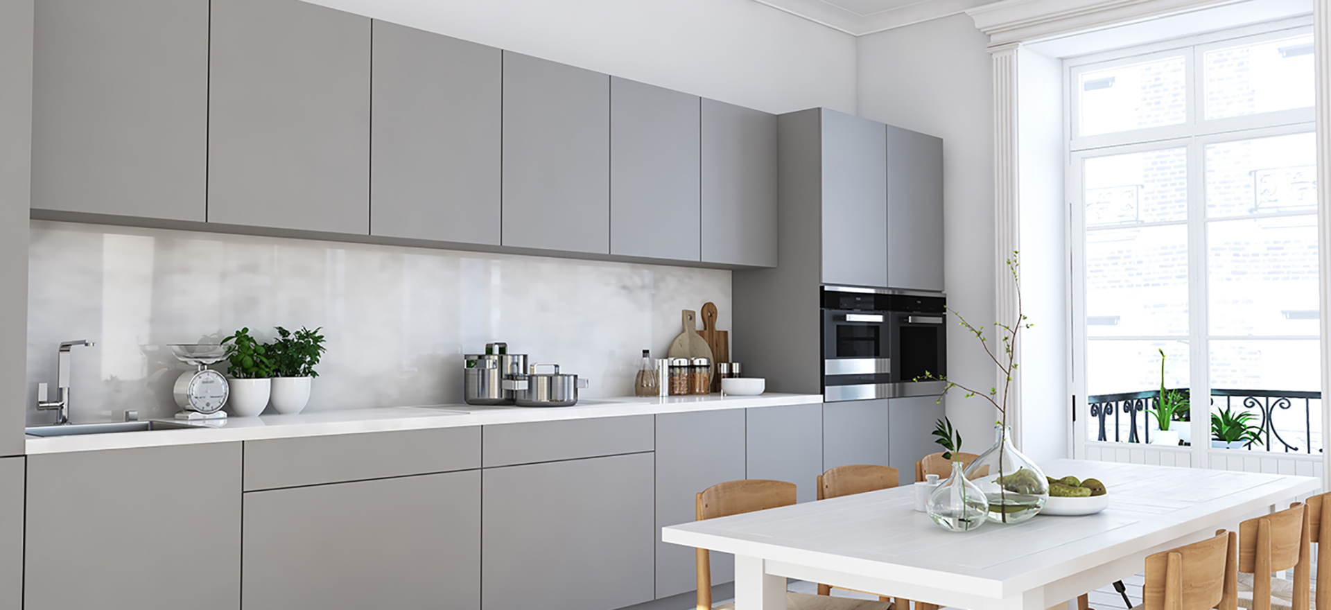 Zijdeglans lichtgrijs keukenwrap