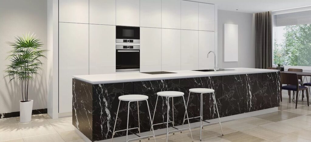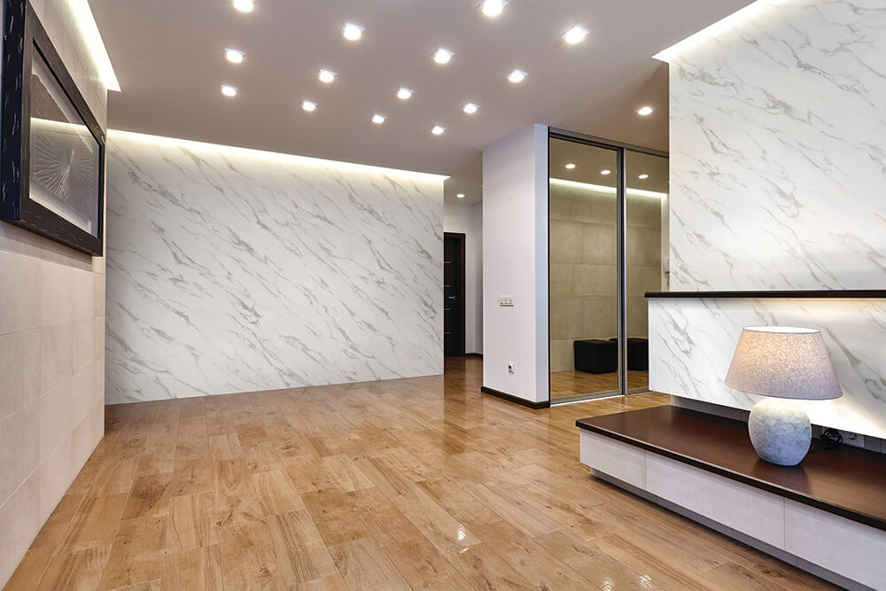 Marmer interieurfolie is een soort vinyl folie die wordt gebruikt om het uiterlijk van oppervlakken in een huis te verfraaien. Het wordt meestal gebruikt op meubels, aanrechten, deurpanelen en andere oppervlakken. De folie heeft de uitstraling van echt marmer en wordt ontworpen om een gelijkaardig patroon en textuur te bieden als echt marmer.
